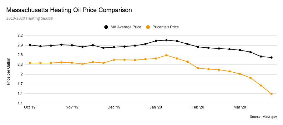 Am I paying a good price for my heating oil? Your answer is in the chart above. This chart shows a comparison of the average price of heating oil in MA for the 2019-2020 heating season compared to the average prices you would have paid as a customer of Pricerite Oil. Also, as a Pricerite Oil customer, you would have been delivered only Premium Heating Fuel. Our premium fuel cleans your heating system by reducing sediment build up that may already be in your tank, pipes, filters, and nozzle. This premium fuel also inhibits corrosion and rust in your tank and fuel lines. The result is healthier fuel and heating system that runs more effectively while improving equipment life expectancy.
